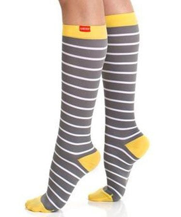 SALE! Nylon 20-30 mmHg Knee High Compression Socks in Yellow, Gray, White Stripe